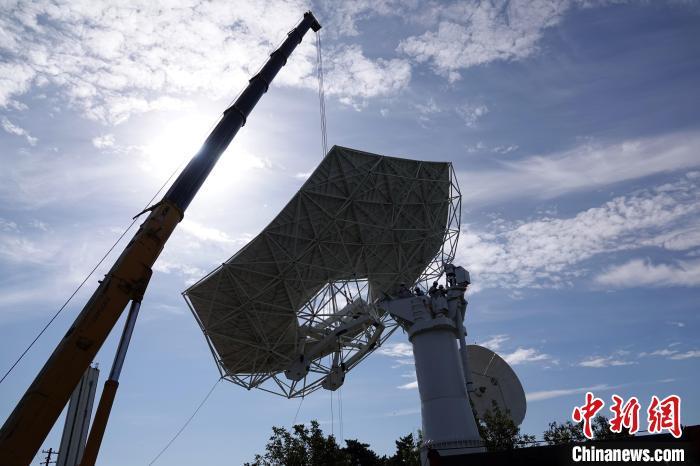 中新网石家庄9月20日电 (记者 孙自法)全球在建最大射电天文望远镜阵列——国际大科学工程平方公里阵列射电望远镜(SKA)项目中,中国牵头研制成功的首台中频天线,9月20日在位于河北石家庄的中国电科网络通信研究院测试现场正式吊装。