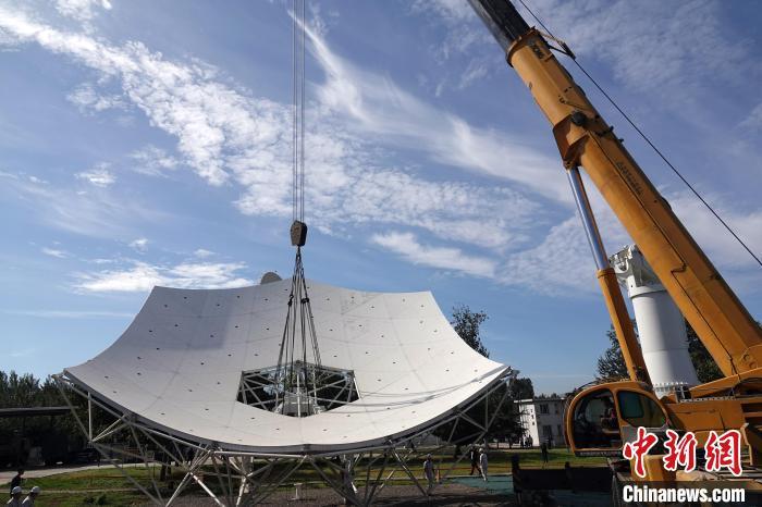 9月20日,中国牵头研制的国际大科学工程平方公里阵列射电望远镜(SKA)项目首台中频天线研制成功后正式吊装。中新网记者 孙自法 摄