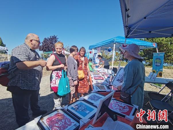 张丽丽在2023年美国塔科马市中秋嘉年华活动中向当地民众介绍中国剪纸。 (受访者 供图)