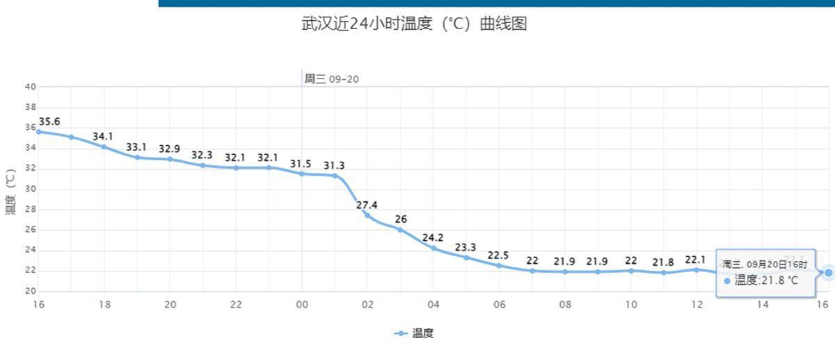 从24小时气温对比来看,同是16时,昨日武汉气温仍高居35.6℃,今日则降至21.8℃,24小时降幅达13.8℃。