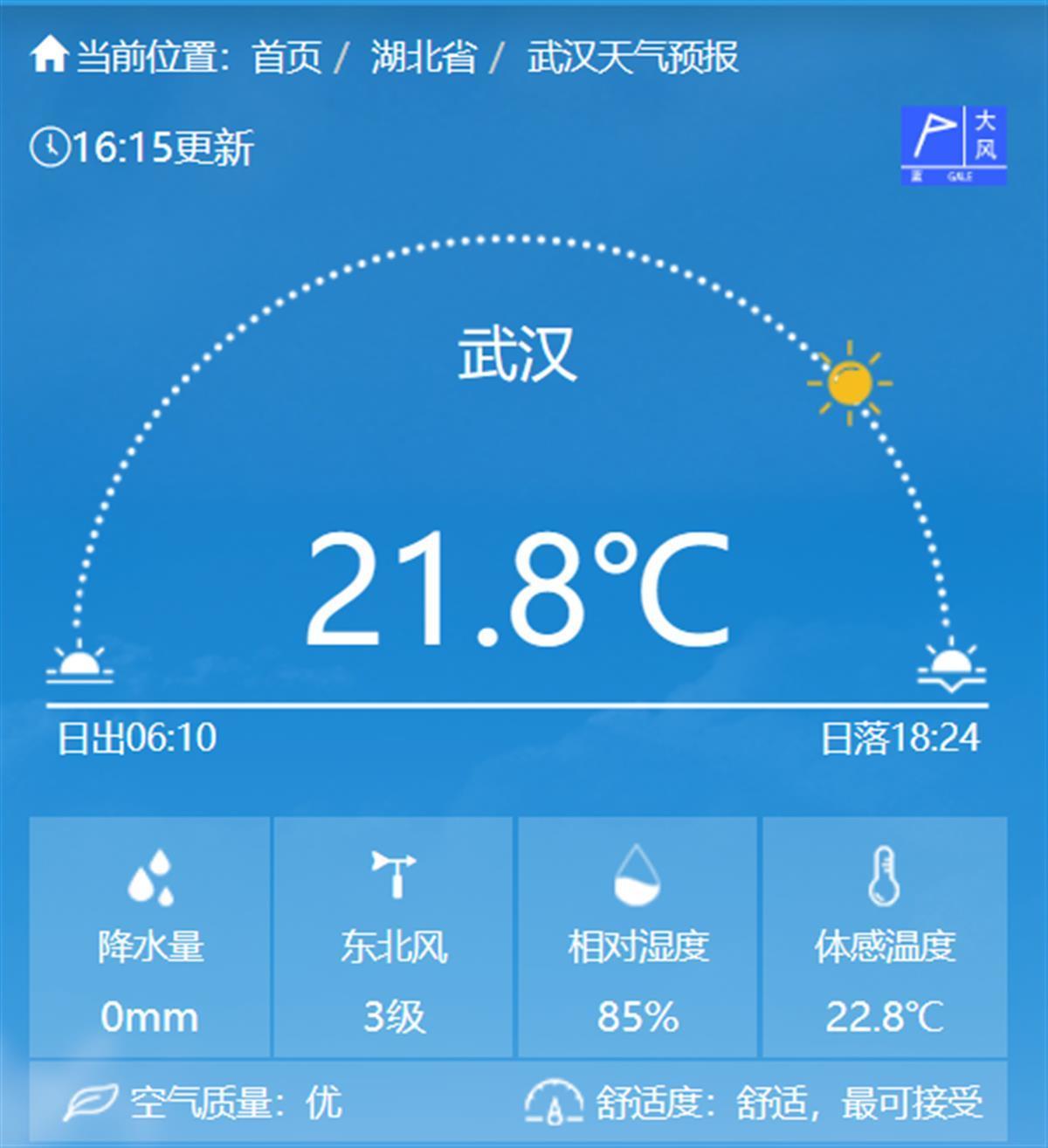 20日16时15分,武汉气温21.8℃,体感气温22.8℃