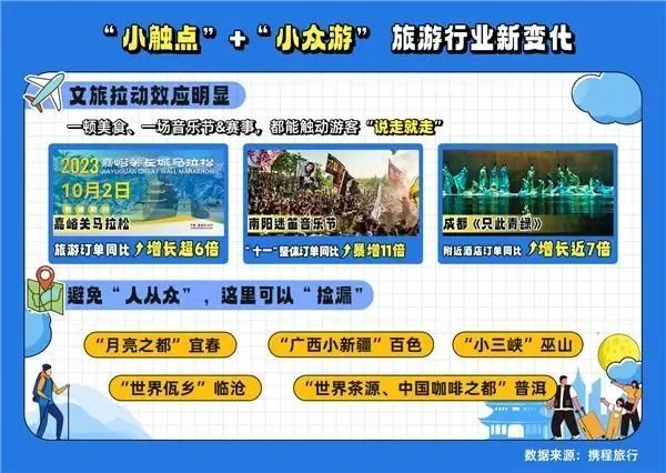 小而美的小众目的地正在崛起。从电视剧《狂飙》带火江门,到淄博烧烤、许昌胖东来,三四线城市成为今年旅游黑马。“月亮之都”宜春、“广西小新疆”百色、“小三峡”巫山等小而美的目的地可以让游客在黄金周避开“人从众”。