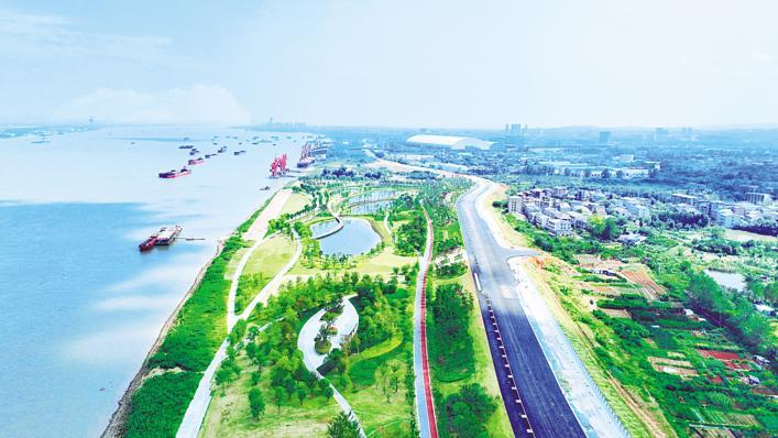 9月18日,由中国一冶承建的鄂州滨江四期项目,围绕滨水体验形成的“绿道、水街、四脉、八景”的空间布局结构基本成型。 (通讯员 汪璇 摄)