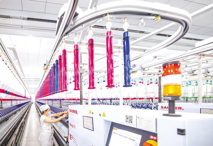 鄂州优化营商环境,护航企业发展。图为湖北枫树线业有限公司生产车间,工人在智能化生产线上赶制订单。 (湖北日报全媒记者 薛婷 摄)