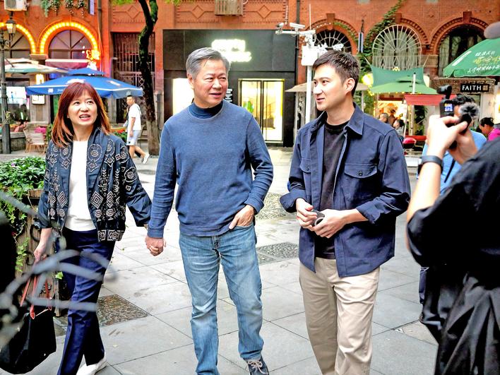赖岳谦夫妇在武汉街头寻“台湾元素”