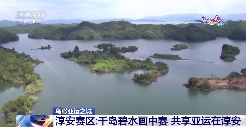 杭州第19届亚运会的淳安赛区位于国家5A级风景区千岛湖,这里将举办铁人三项等赛事。秀美的自然风光与动感的体育项目相结合,成为一幅幅人与自然和谐共生的美丽画卷。鸟瞰亚运之城,今天就跟随总台记者梁烨,一起来看看杭州淳安千岛湖。