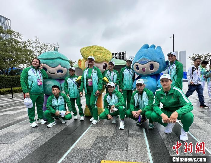 中新社杭州9月22日电 (记者 张一辰)杭州亚运会代表团欢迎仪式22日在运动员村举行,土库曼斯坦、乌兹别克斯坦、塔吉克斯坦等中亚国家的亚运代表团陆续在鼓乐声中登场亮相。