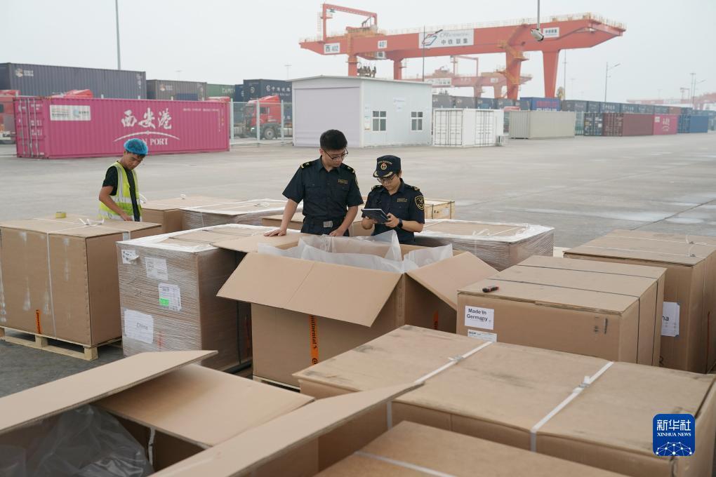 9月11日,西安车站海关工作人员在西安国际港站海关监管区内查验进口货物。