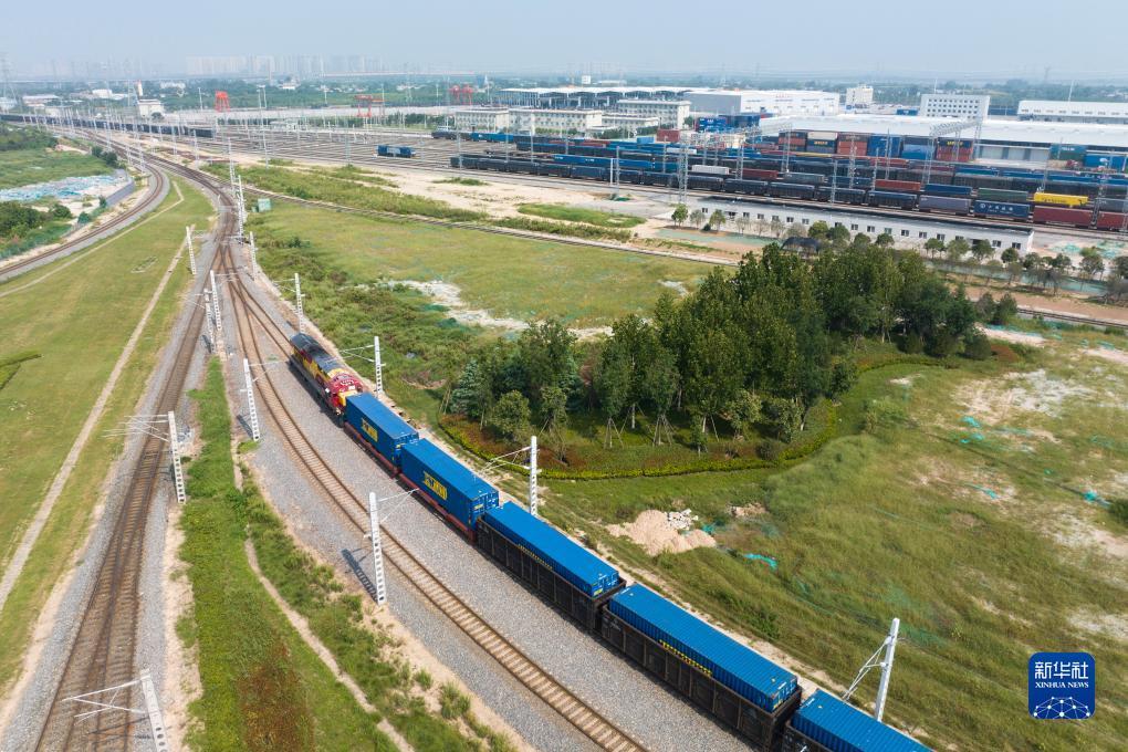 中欧班列长安号驶离西安国际港站(9月7日摄,无人机照片)。