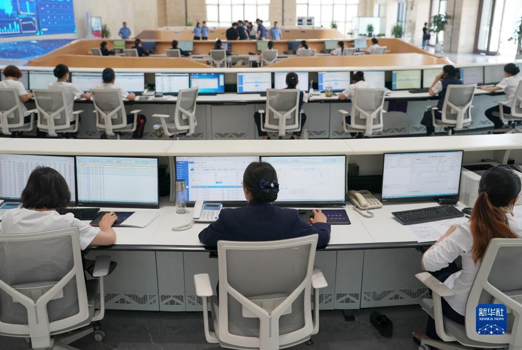 9月7日,工作人员在位于西安国际港站内的货运服务中心大厅中处理业务。