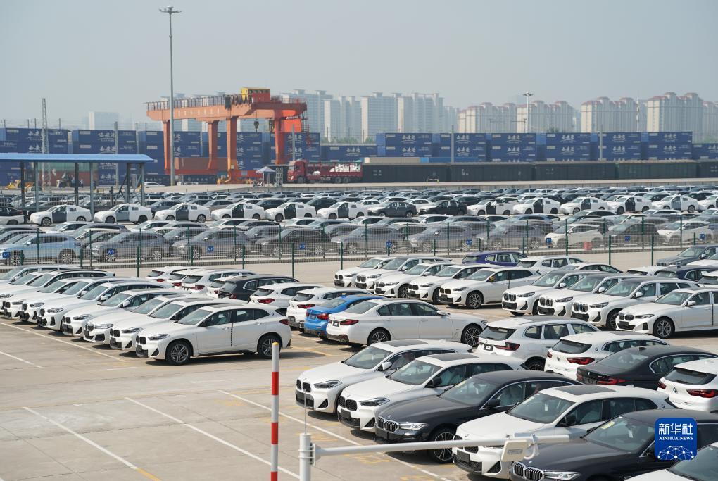 运载260多辆比亚迪新能源汽车整车的中欧班列长安号从西安发车(4月26日摄)。