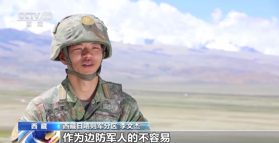 西藏日喀则军分区 李文杰:通过这次和兄弟们走在边防线上,我切切实实地感受到了作为边防军人的不容易,但是走在边防线上时一种对祖国的骄傲和自豪感从心底油然而生,这更让我感受到了一种作为边防军人的使命和责任感。