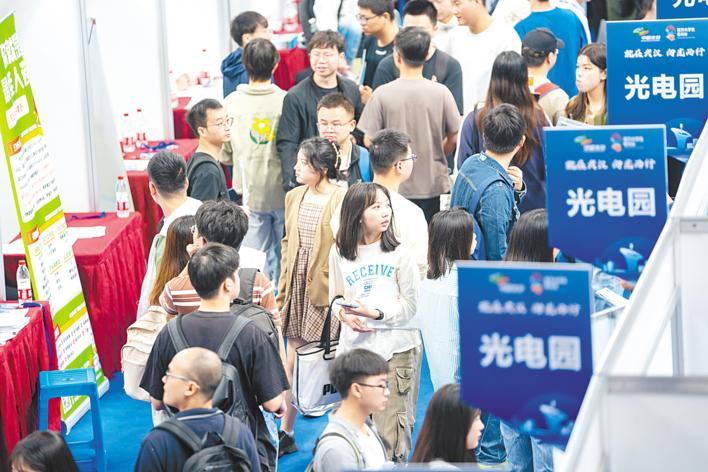 “今天一看,光谷好多优质的企业,岗位很高端、薪资也不错。”这是武汉工程大学本科应届毕业生黄驹参加的第一场招聘会。通信工程专业就读的他,与光谷主打的光电子信息产业高度契合。