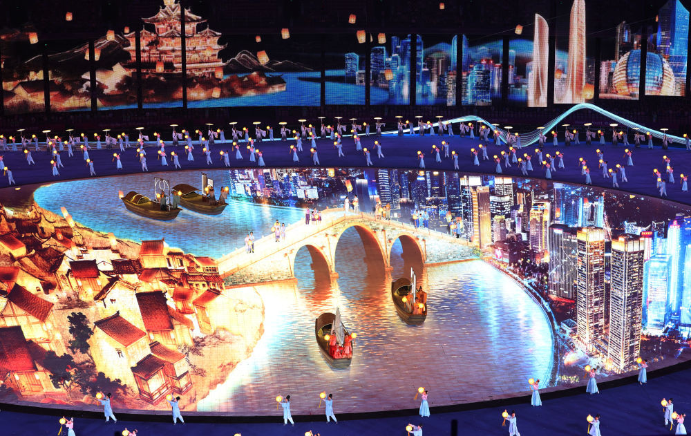“以良渚之光交映秋分之辉,宋韵画卷中处处见风雅……开幕式文艺演出大气唯美地呈现了中华优秀传统文化。”浙江小百花越剧院院长王滨梅说,在开幕式下篇《携手同行》中,由四位“小百花”演绎的越腔《忆江南》,尽显江南文化与中华底蕴的非凡气度。“而数字国画中的宋韵笔墨,一古一今相得益彰,让世界在中华文明的星辰璀璨中,感受新时代中国自信开放的大国气象,感知更为自信的亚运杭州、活力浙江,更是传递了我们中华民族亘古流传的文化价值与文化审美。”