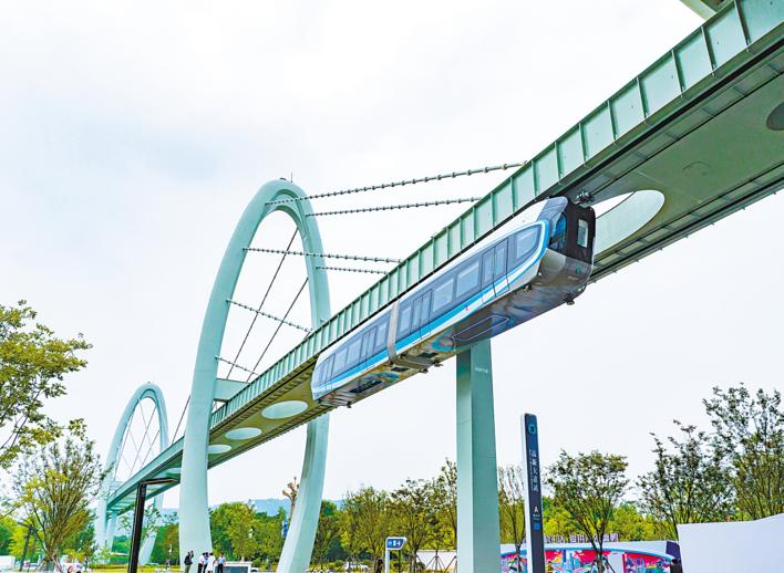 9月26日,我国首条空中悬挂式列车“光谷光子号”——光谷空轨旅游线正式开通运营。 (湖北日报全媒记者 魏铼 摄)