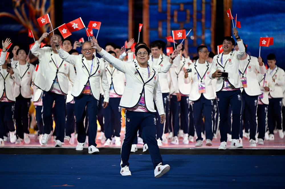 9月23日,中国香港代表团团长霍启刚(前)在开幕式上入场。新华社记者 宋彦桦 摄