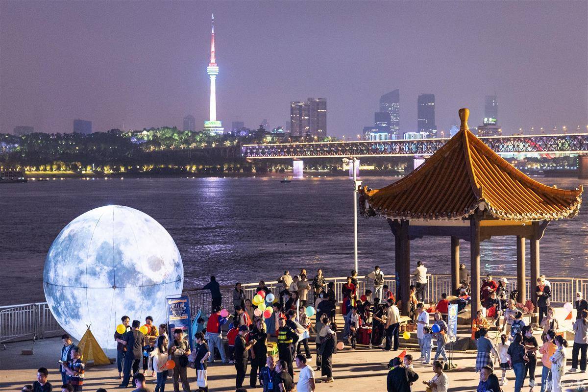 9月26日晚,一个充气“月亮”在武昌江边引起众多市民围观。当晚,“月满黄鹤 锦绣中华”江滩音乐嘉年华在武汉武昌黄花矶亲水平台举行,来自武汉音乐学院的学生、黄鹤楼街道童声合唱团等演出团体为现场市民奉献了一场视听盛宴,共同迎接中秋国庆佳节。