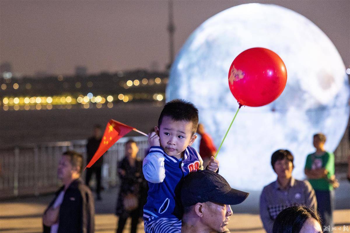 9月26日晚,一名小朋友拿着气球和国旗在武昌江边。当晚,“月满黄鹤 锦绣中华”江滩音乐嘉年华在武汉武昌黄花矶亲水平台举行,来自武汉音乐学院的学生、黄鹤楼街道童声合唱团等演出团体为现场市民奉献了一场视听盛宴,共同迎接中秋国庆佳节。