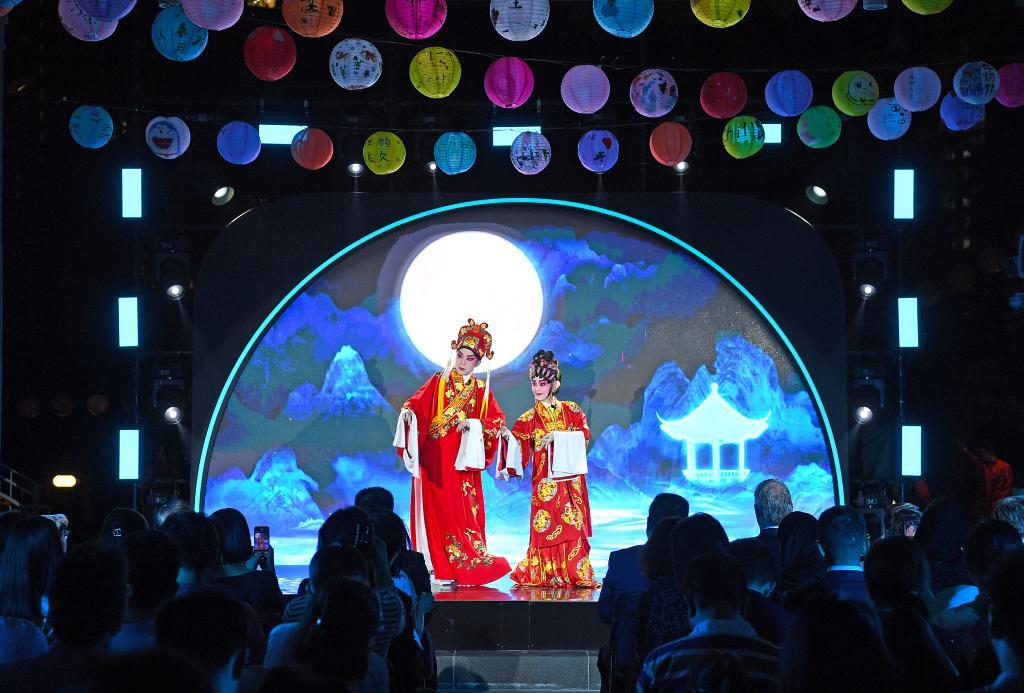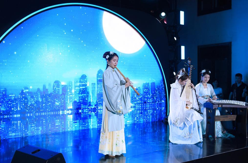 9月27日,演员在表演民乐合奏《城里的月光》。新华社记者 陈铎 摄
