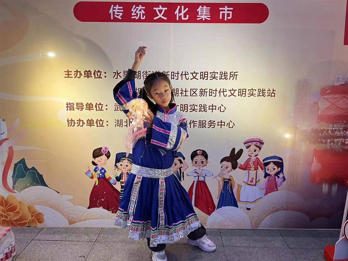 在民族服饰体验区,不少居民和少数民族同胞驻足参观。志愿者向居民介绍民族服饰文化和穿戴特点,帮助大家进行试穿体验打卡,感受不同民族的风俗文化。水果湖街道持续开展新时代文明实践服务活动,把民族团结融入文明实践活动,互促共进,在服务中引领群众思想,铸牢中华民族共同体意识,促进民族团结。