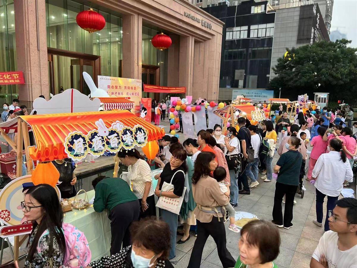 湖北日报讯(通讯员凃倩、李琴)9月27日晚,武汉市武昌区水果湖街道紧扣统一战线“同心聚力·共同缔造”主题,持续推动文明实践活动走进滨湖社区,在中北路德成中心大厦门前广场开展“‘滨’纷中秋乐,同心绘团圆”传统文化市集,现场热闹非凡,吸引近500人游玩。