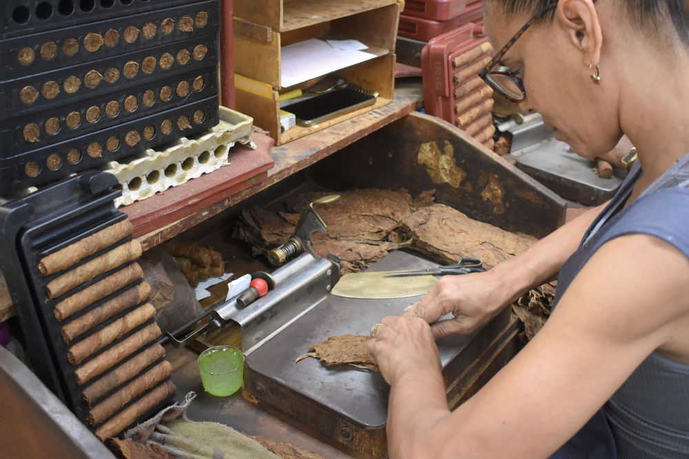 3月2日,工人在古巴首都哈瓦那“帕塔加斯”雪茄厂卷制雪茄。新华社记者朱婉君摄