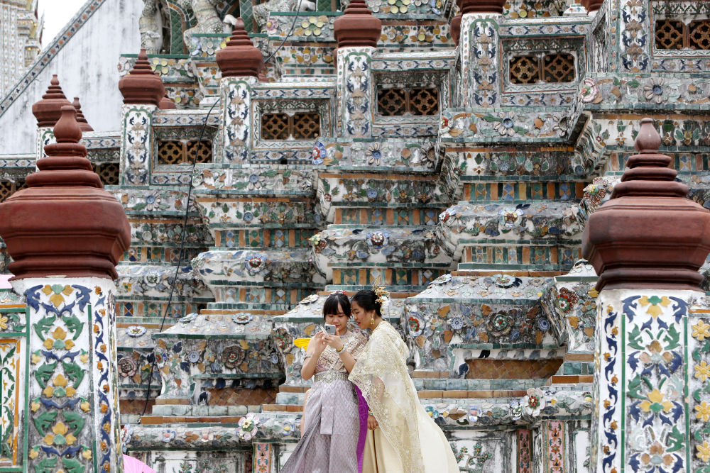 6月16日,游客在泰国曼谷郑王庙景区游览。新华社记者王腾摄