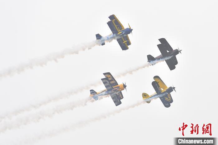 中新网太原9月28日电(高雨晴 刘小红)“猫女”机翼行走、“J”螺旋飞行特技、多机编队……2023太原国际通用航空博览会28日在山西太原开幕。其间,来自瑞典、澳大利亚、南非等国的5支国际飞行表演队,带来高难度特技飞行表演,吸引众多航空爱好者共赏“天空之舞”。