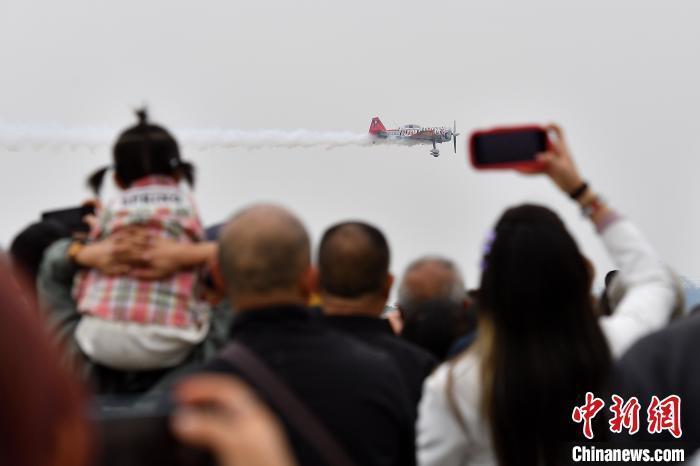 2023太原国际通用航空博览会28日在山西太原开幕。图为民众观看国际特技飞行表演队表演。韦亮 摄