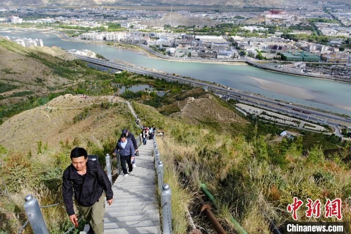 “山不见我、我自见山。”“不必告诉我山有多高路有多远,我会亲自来看。”“长路漫漫云灿灿,轻舟已过万重山。”……9月28日,中新社记者在拉萨南山公园半山腰看到游客、市民的登山留言,现场也可以看到,长长的步道上满是登山者,拾阶往那山顶而去。