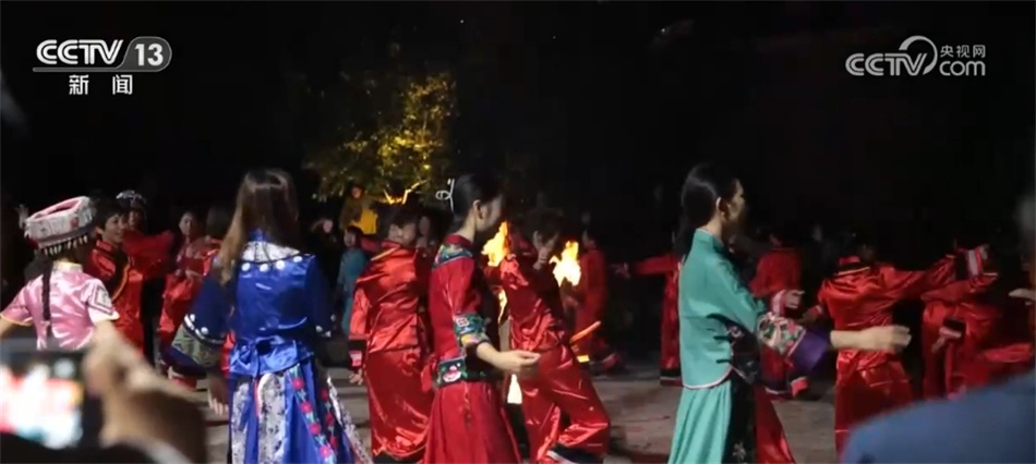 随着欢快的音乐响起,当地村民穿上色彩鲜艳的节日盛装,踏着鼓点,围着篝火跳起土家摆手舞,丰收的喜悦洋溢在村民们的脸上,游客们加入其中,大家手牵着手,共同舞出金秋和美乡村新画卷。