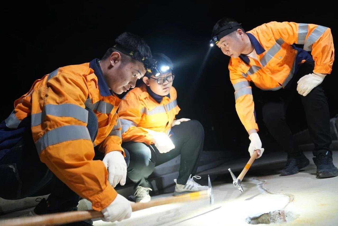 检修铁路大桥的桥梁梁底,比想象中更艰难。夜幕降临,铁路职工穿戴好防护用具,借助头灯的微光,来到检查梯的入口向下攀爬。每次移动两步,他们就要重新扣一次安全绳,确保人身安全。寂静深夜里,只有金属卡扣的相撞声不时回响。