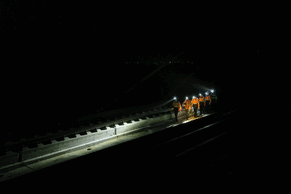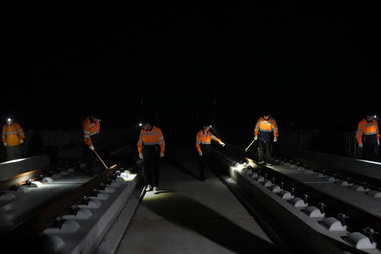 9月29日零时,本次桥梁检修任务全部完成后,6人小组开始巡线。6公里的检修线,他们要步行巡护一遍,检查是否有作业工具遗落和钢轨螺栓松动的现象。
