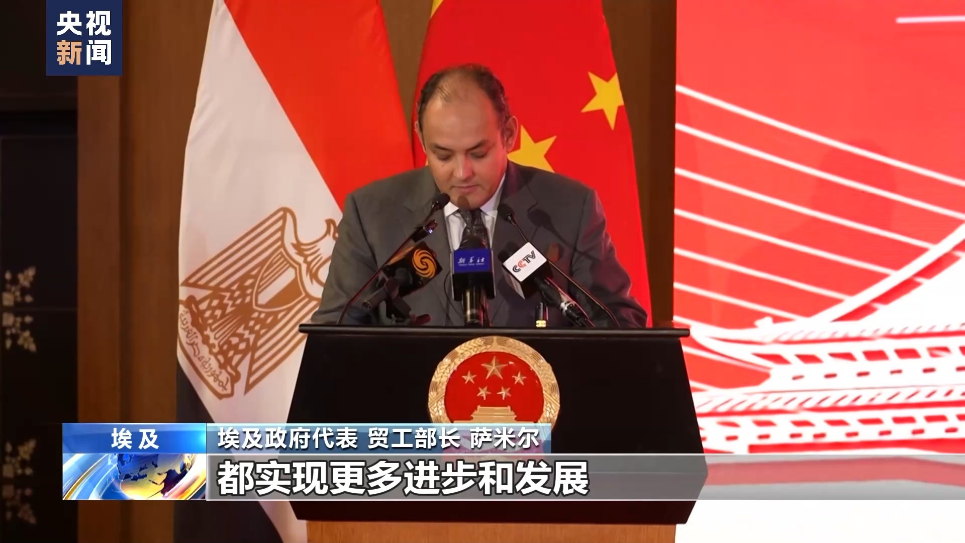 埃及政府代表 贸工部长 萨米尔:我们衷心希望未来中国在各领域都实现更多进步和发展。
