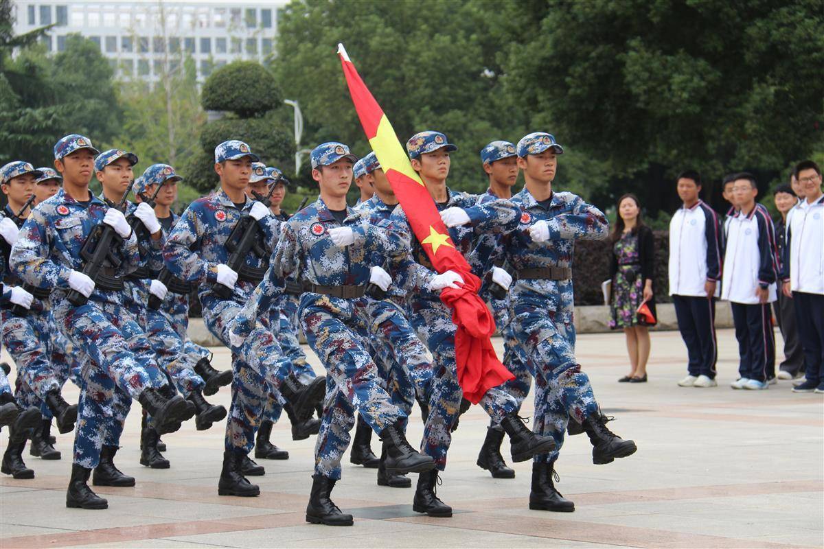 升旗仪式开始,护旗方队迈着铿锵有力的步伐,昂首挺胸、英姿勃发地走向升旗台。全场师生面向旗杆,看五星红旗升起,齐唱国歌,共同见证着五星红旗冉冉升起的庄严时刻。