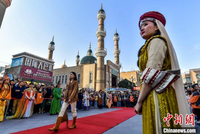 9月29日,位于新疆乌鲁木齐市二道桥的新疆国际大巴扎举行开街仪式,吸引众多市民及游客围观。即日起,该景区每天将举办隆重盛大的开街仪式,充满民族特色的音乐和舞蹈,以及时装走秀、巡游等环节,让游客近距离感受新疆的“热情”。