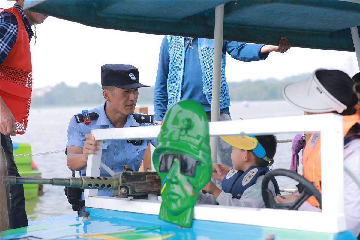节日期间,后官湖湿地公园警务室安排一名民警和一名辅警驻点办公,处理矛盾纠纷,接受游客求助。9月29日上午,民警王文超、辅警李秀成在景区巡逻,提醒游客划船时穿好救生衣。