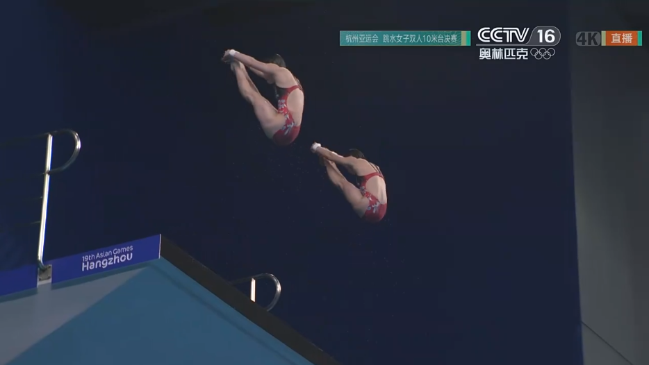 9月30日,杭州第19届亚运会跳水女子双人10米跳台比赛,中国组合全红婵/陈芋汐以巨大优势夺得金牌。中国队实现亚运会跳水女子双人10米跳台六连冠。