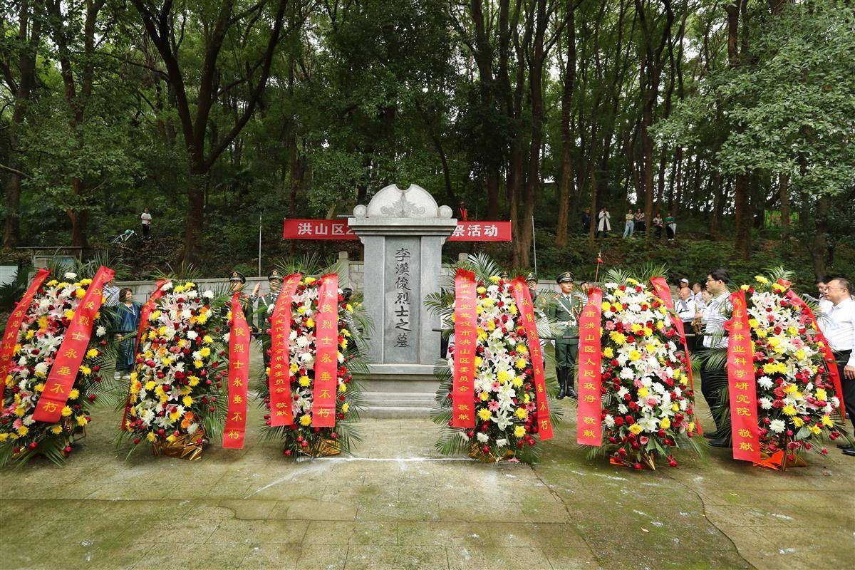 上午10时,参加公祭活动的全体人员缓步来到李汉俊烈士墓前,鞠躬致意,高唱国歌,向革命烈士默哀;少先队员集体献唱《我们是共产主义接班人》;伴随着《鲜花曲》,向烈士墓敬献花篮。区“四大家”主要负责同志和省武警总队、省林科院相关负责同志,以及参加公祭活动的其他同志瞻仰烈士墓,依次敬献鲜花,寄托哀思。