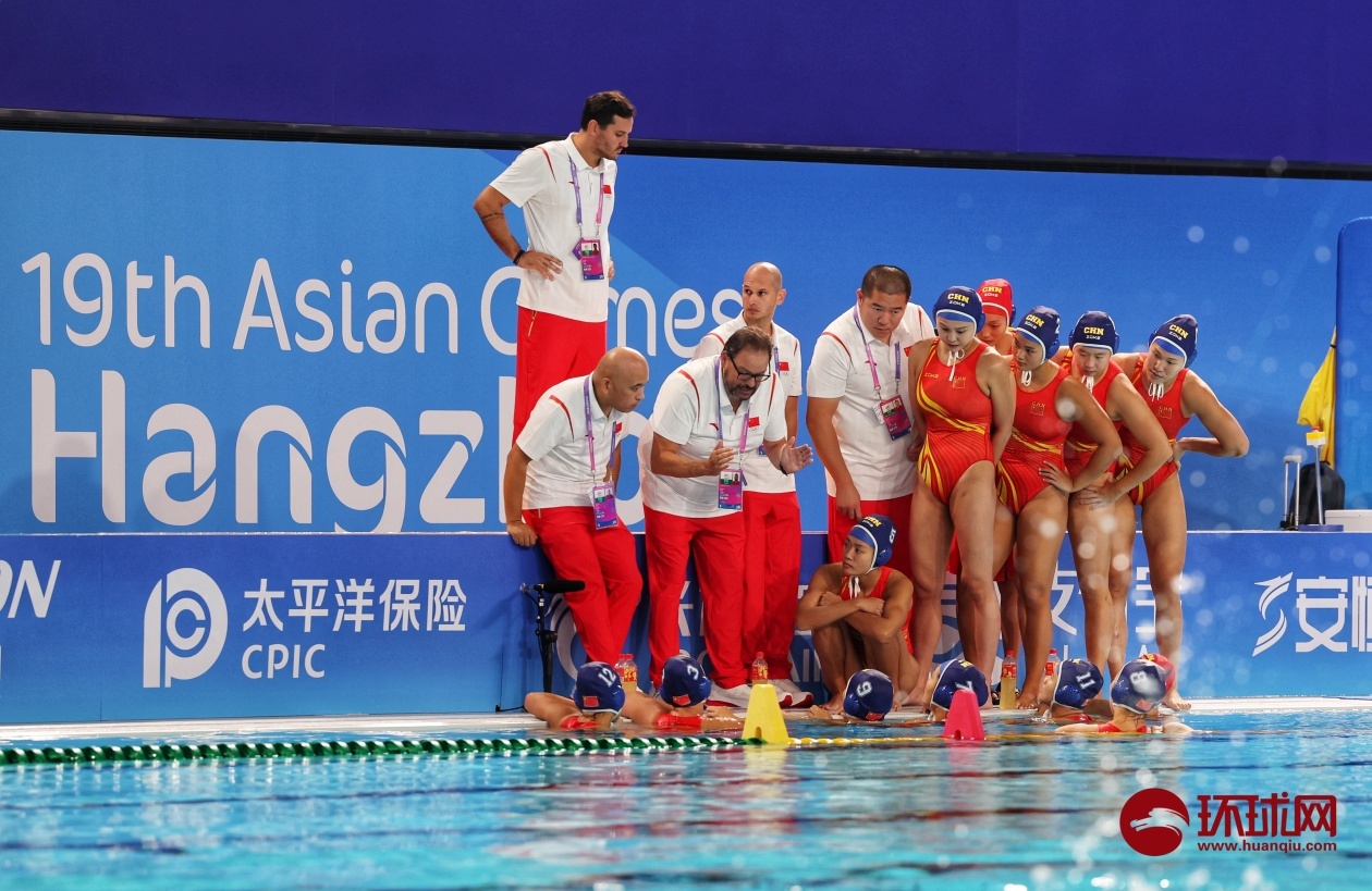 10月1日晚,杭州亚运会女子水球决赛在黄龙体育中心游跳馆进行。中国队以24-11战胜日本队夺得冠军,连续第四次站上亚运会最高领奖台。 (环球时报记者 崔萌摄)