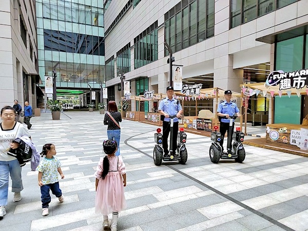 上午11时许,极目新闻记者来到文安街,从梦时代广场背后进入,见到正在驾驶电动平衡车巡逻的民警肖楠。