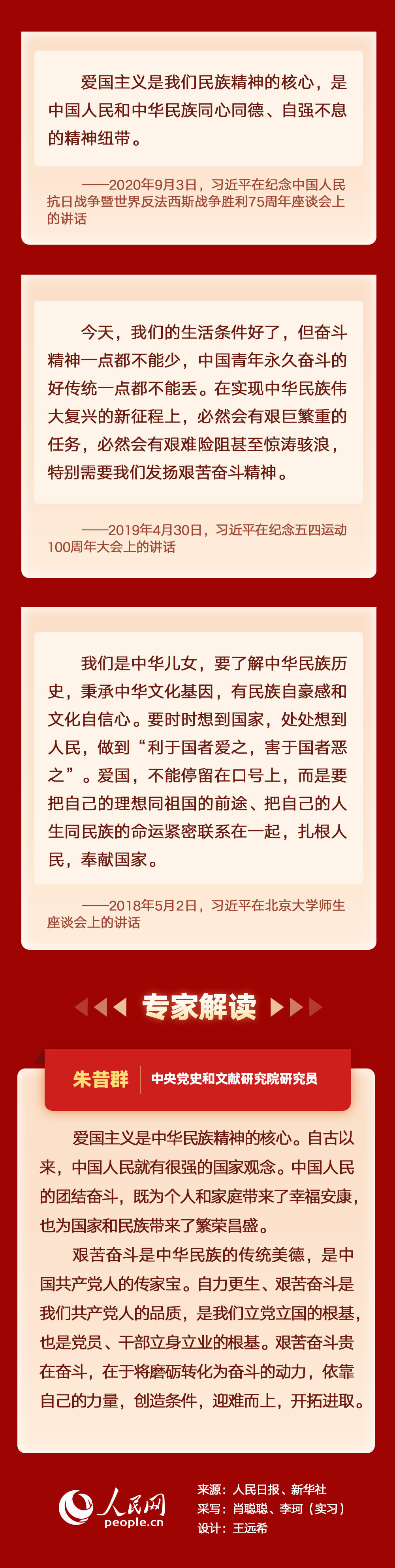 爱国,是人世间最深层、最持久的情感,是一个人立德之源、立功之本。爱国奋斗,是中华民族生生不息代代相传的民族基因。人民网带您重温习近平总书记重要论述并邀请专家解读。