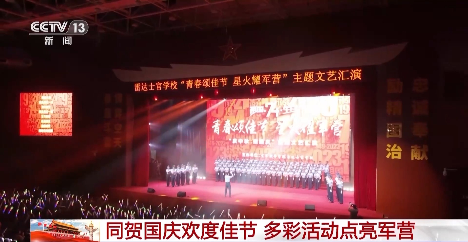 在空军预警学院雷达士官学校,新兵们组织了主题文艺汇演和“学习二十大 共圆强军梦”灯谜会等系列活动,并开展了篮球赛、“大力神杯”拔河比赛等竞赛,欢度走进军营后的第一个国庆节。