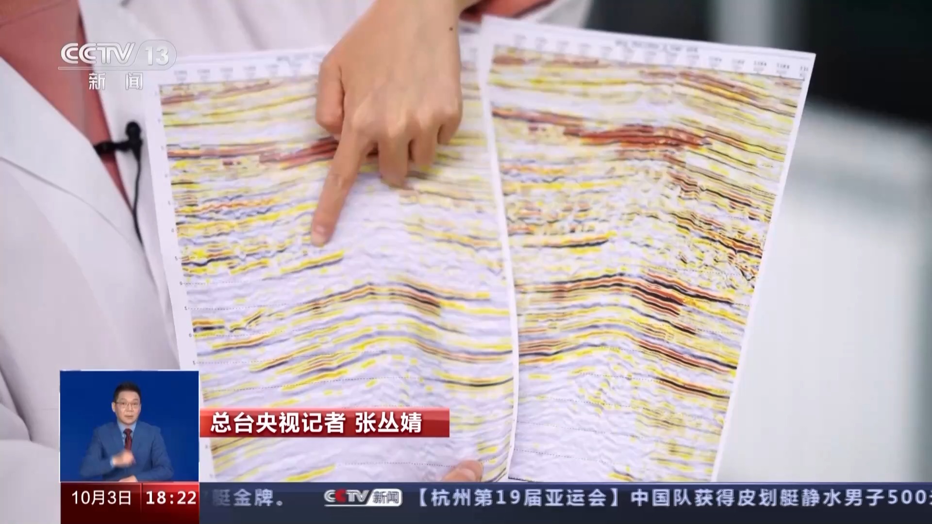 总台央视记者 张丛婧:大家看我手里拿的这两张地层剖面图,这是三年前的,当时的技术看得还很模糊,我们再来看现在,已经能够很清晰地看出地质结构,就可以直观地判断出油气储存情况。这样一对比还是很明显的。