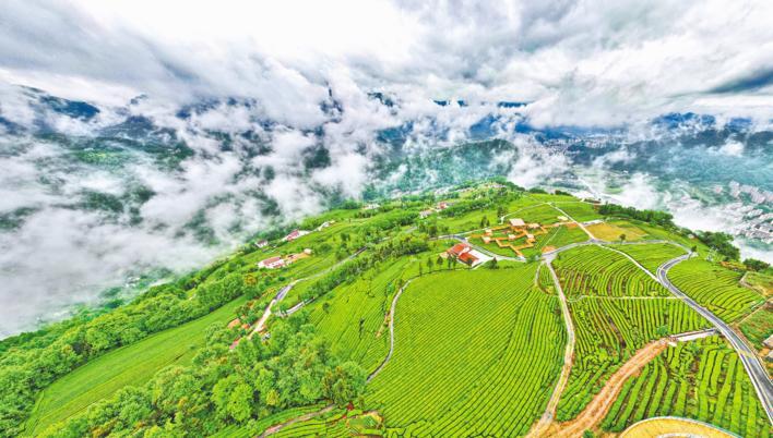 五峰青岗岭生态茶园云雾缭绕,茶香四溢,置身茶园空中观光游步道上,如临仙境。(湖北日报全媒记者 刘曙松 摄)