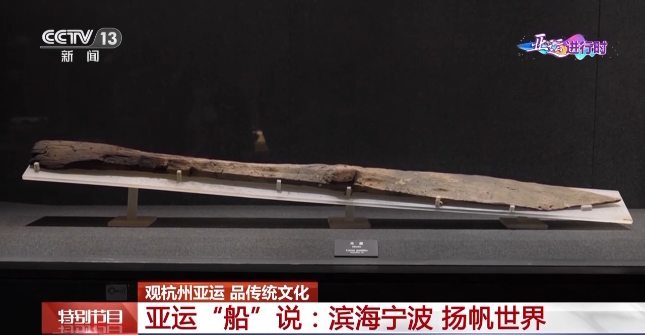 总台记者 杜金明:带着这艘船,我又来到了浙江余姚河姆渡遗址博物馆,这里存放了河姆渡文化当中一个重要的遗存,一支木桨。有桨必有船,7000年前的河姆渡人就懂得造船了吗?他们用船来做什么呢?穿越时空,我来找寻这艘船的远古印记。