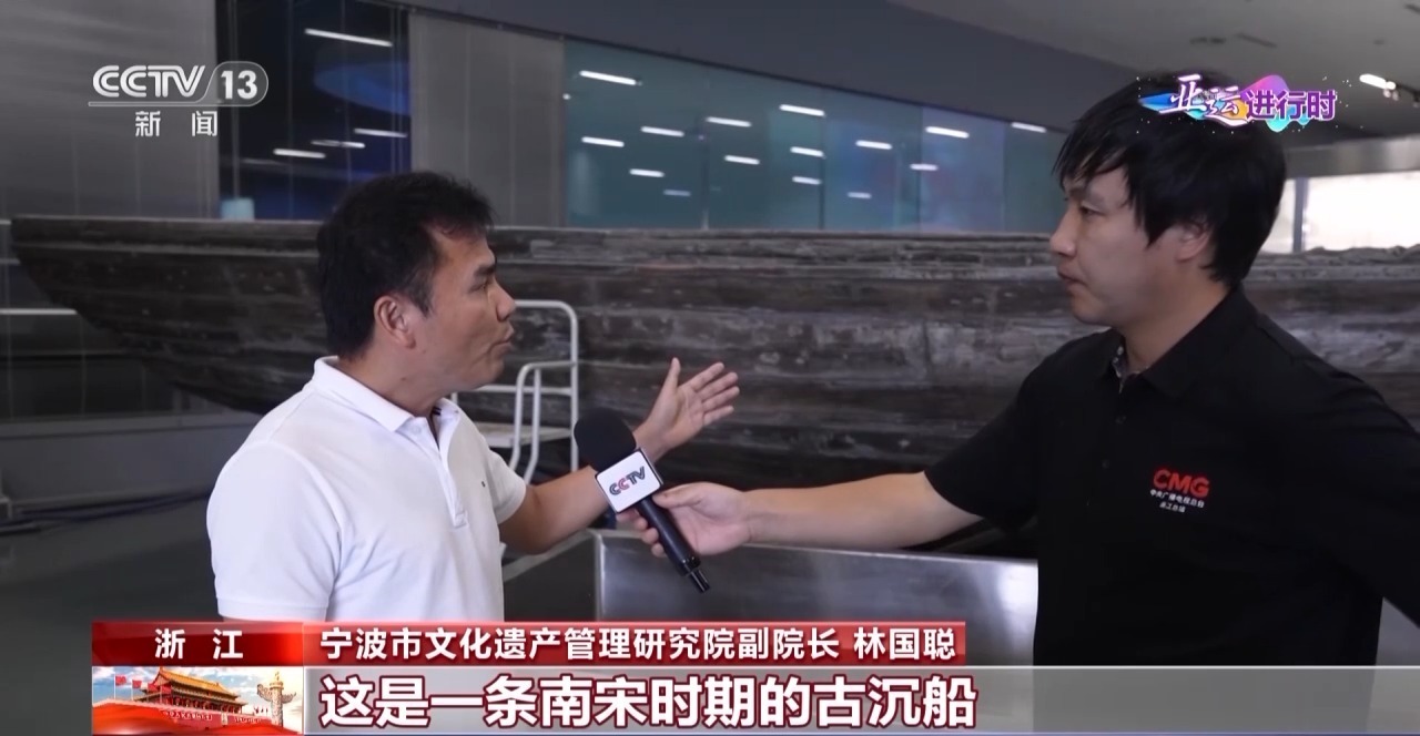 宁波市文化遗产管理研究院副院长 林国聪:这是一条南宋时期的古沉船。2003年我们在(宁波)市区和义路解放桥旁发现的。(船体)构件显示,它就是一艘近海跟内河的一个接驳运输船。因为宁波唐宋以来,它就是一个东亚的枢纽港,联通世界的国际港,需要(建立)外海的大轮船,跟内港小船相互配套,协调作业的一个航运体系。