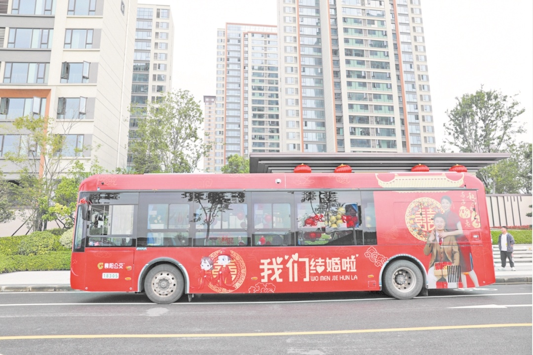 楚天都市报极目新闻讯(记者周萍英 通讯员赵明星 葛铁)将公交车装扮成喜庆的中国红,车身和车尾印着大幅结婚照,10月3日,襄阳一对新人定制公交车当婚车全城“撒爱”,吸引市民纷纷拍照。