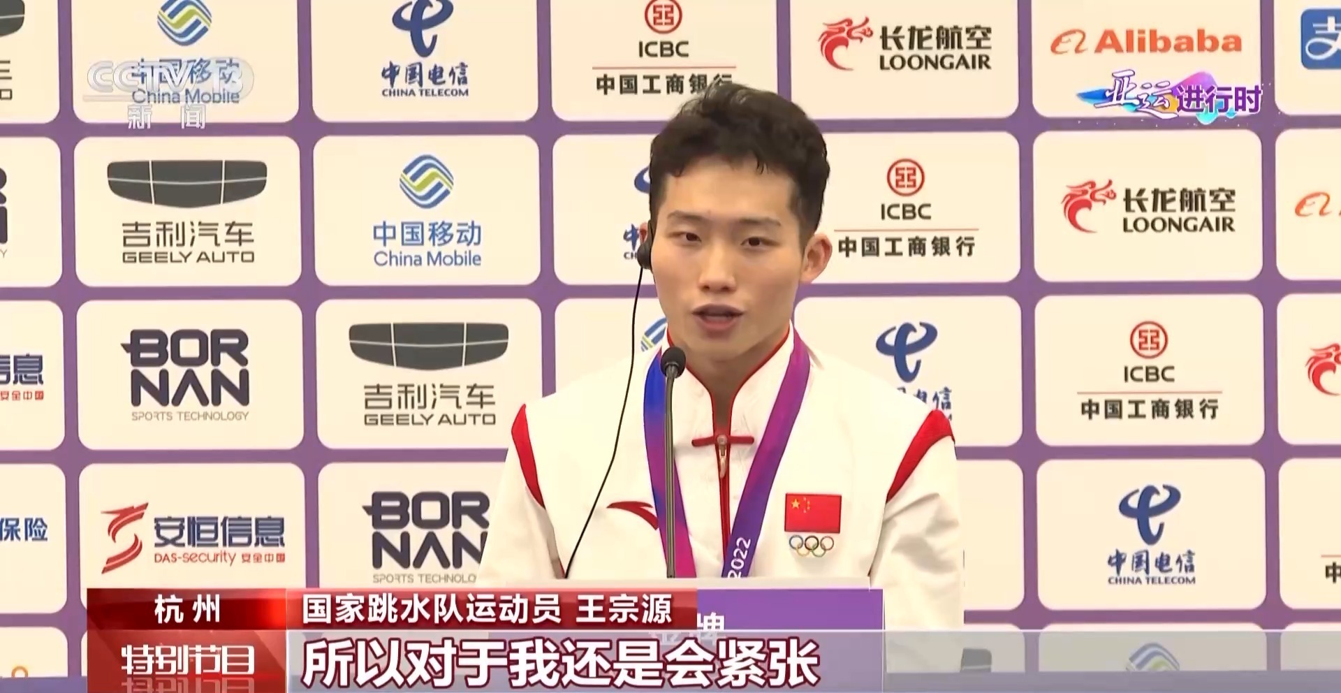 国家跳水队运动员 王宗源:每一场的比赛都会不一样,特别是在自己的国家举办这么大的盛事,所以对于我还是会紧张。再加上这么多的观众,然后给自己了一些压力,可能想得太多。