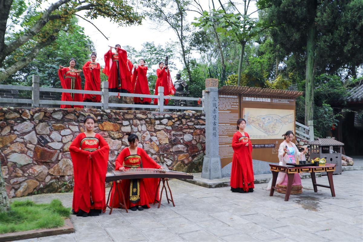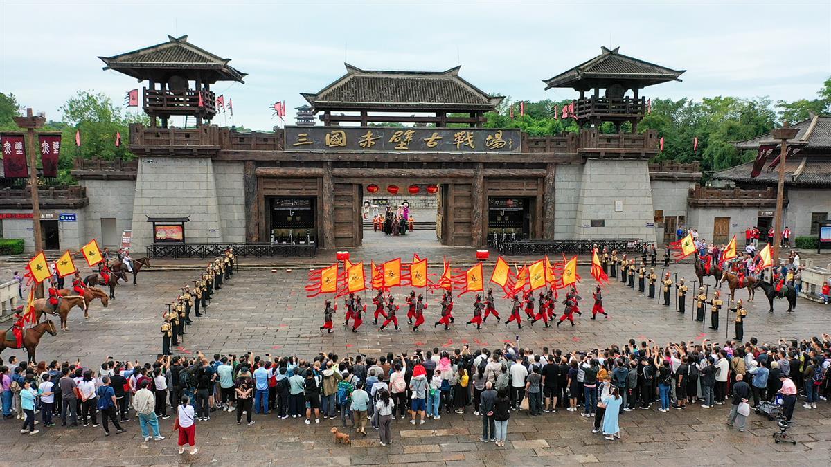 精彩的互动表演结束,游客们开始步入景区游玩。位于湖北赤壁市的三国赤壁古战场景区,是当年赤壁之战的发生地,也是我国古代“以少胜多,以弱胜强”的七大战役中唯一尚存原貌的古战场。